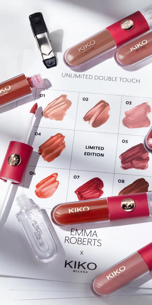 رژ لب مایع دو کاره کیکو Kiko Milano Unlimited Double Touch یک محصول آرایشی نوآورانه برای لب از برند ایتالیایی Kiko Milano است. این محصول با طراحی دو سر و فرمولاسیون ویژه، به طور خاص برای ارائه رنگی با ماندگاری فوق‌العاده و فینیشی براق طراحی شده است. این رژ لب یک راه حل کامل برای داشتن لب‌هایی پررنگ و درخشان است که در طول روز بدون نیاز به ترمیم، ثابت باقی می‌ماند.
